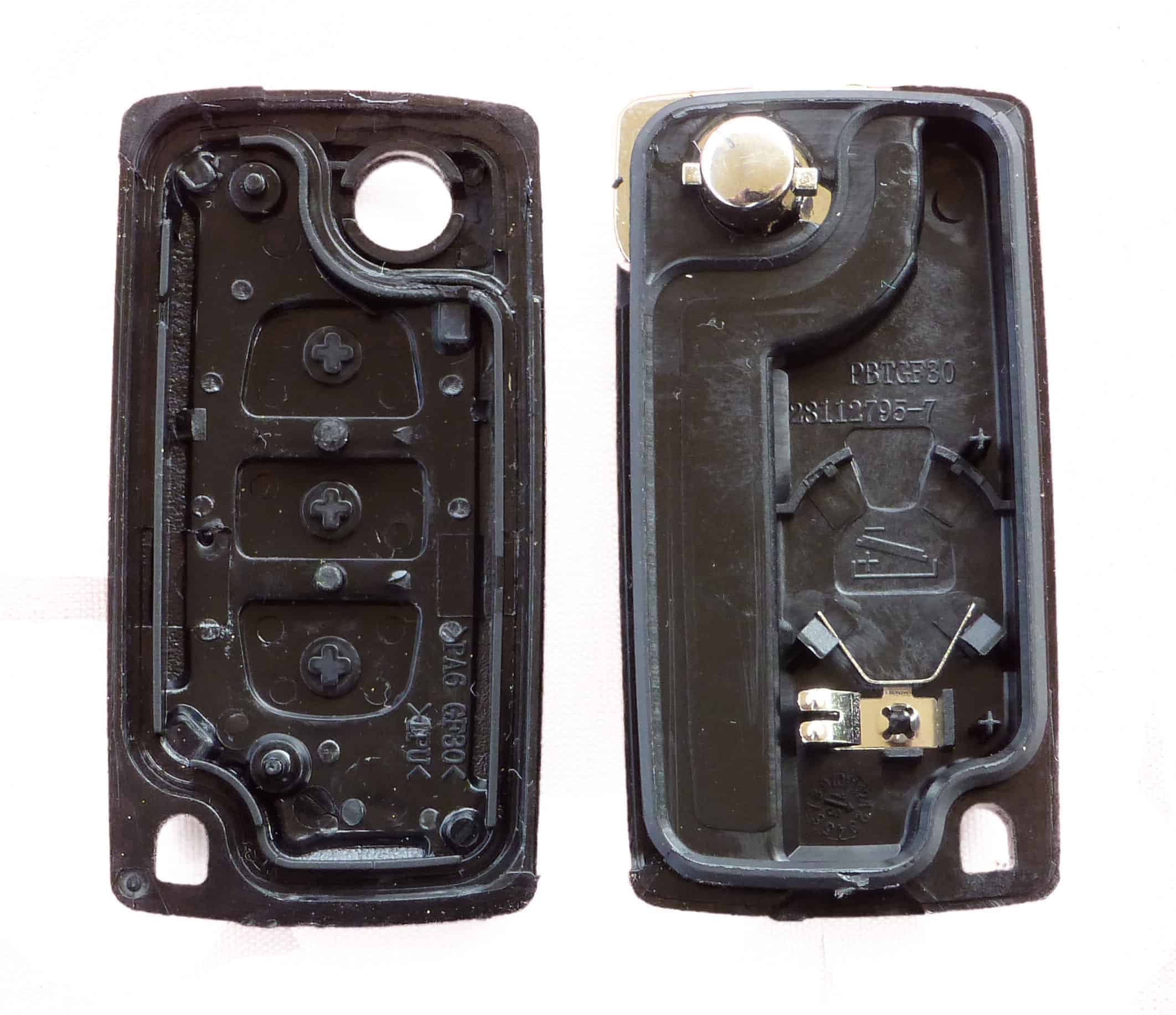 Peugeot 3 Button Remote Flip Key Fob Case Shell including rubber buttons. With this Replacement Car Key Casing you just put your immobiliser and electronics in, get the VA2 key blade cut to your cars profile and away you go.